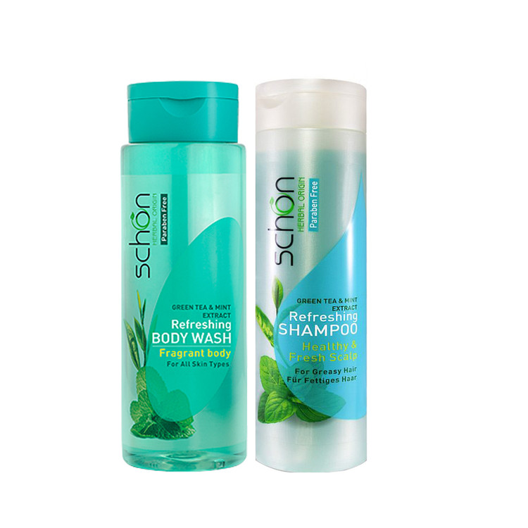 پک شامپو سر و شامپو بدن چای سبز و نعنا شون
