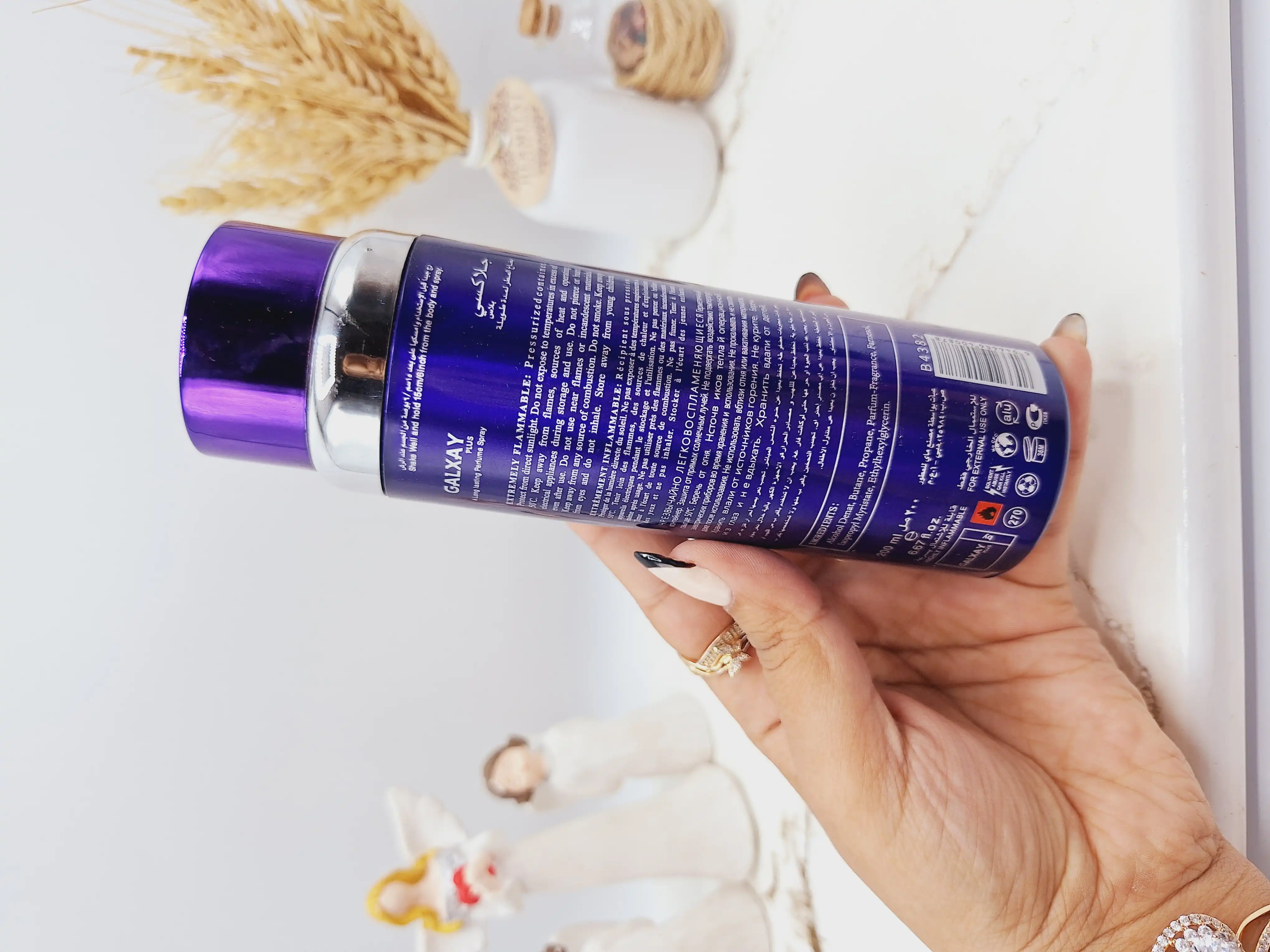 اسپری های خوشبوکننده گلکسی مناسب برای استفاده بر روی پوست و لباس شما می باشد اما در هر صورت بهتر است که از اسپری های خوشبو کننده بر روی پوست بدن استفاده نکنید مگر از نوع ضد عرق آن باشد. اسپری های خوشبوکننده گلکسی دارای ماندگاری بسیار بالا است زیرا از مواد بسیار عالی و با کیفیت تهیه شده و به دلیل سری مناسب آن پخش بوی بسیار متناسبی را دارد حجم : 200 میل با ماندگاری بالا با رایحه های خوشبو تولید : اماراتنظرات