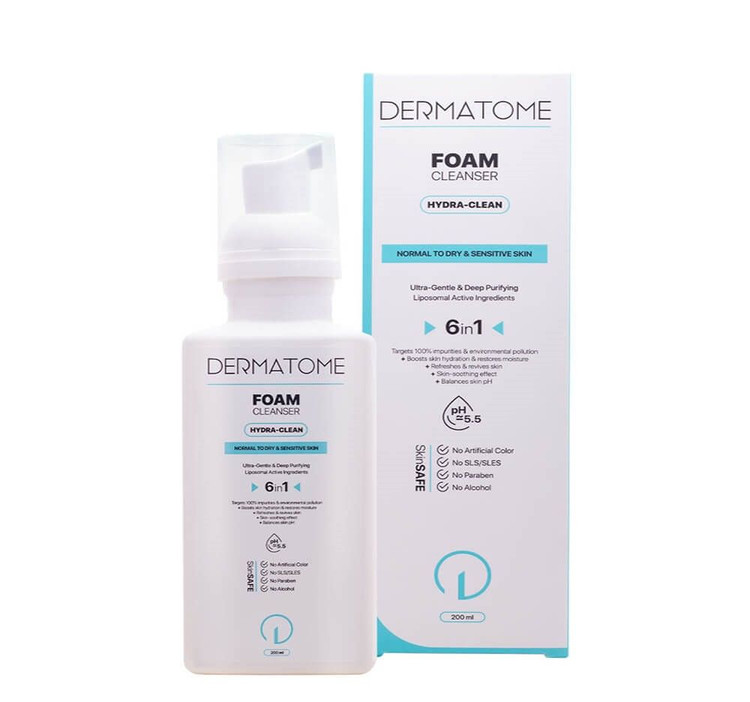 فوم شوینده و مرطوب کننده درماتوم، با به کار گیری از تکنولوژی روز گزینه بسیار مناسبی برای پاک کردن مواد آرایشی و آلودگی از روی پوست می باشد. استفاده از این محصول به طور کامل از رطوبت و پوشش طبیعی پوست محافظت می نماید و از ایجاد خشکی بر روی پوست جلوگیری میکند. \n \n ترکیبات\n پانتنول، آلانتوئین، کلیمبازول، عصاره کالاندولا، عصاره بابونه، بیزابولول، اسانس مجاز آرایشی و بهداشتی، اسید سیتریک، عصاره آلوئه ورا، دی سدیم ا.د.ت.ا، آب دیونیزه و ...\n \n هشدار\n در صورت ایجاد هرگونه حساسیت مصرف این محصول را قطع کنید. \n از تماس این محصول با چشم، زخم باز و نواحی مخاطی خودداری شود.\n \n طریقه نگهداری\n در جای خشک و خنک زیر 30 درجه سانتیگراد و دور از تابش نور خورشید نگهداری شود.\n \n طریقه مصرف\n در ابتدا پوست را با آب ولرم خیس نمایید و سپس 2 الی 3 پاف از محصول را بر کف دست قرار داده و به آرامی و حرکت دورانی بر روی پوست صورت ماساژ دهید سپس بعد از گذشت 2 الی 3 دقیقه آبکشی نمایید.