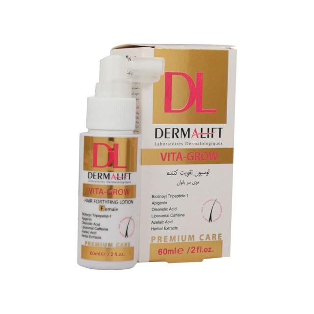 لوسیون تقویت کننده مو سر بانوان درمالیفت مدل Vita Grow حجم 60 میلی لیتر